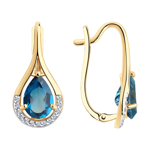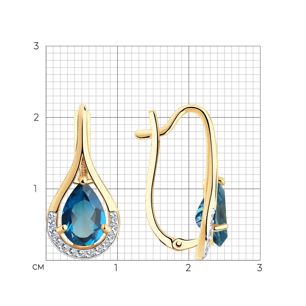 Привлекательные серьги из красного золота 585 пробы украшены великолепными Лондон топазами и сверкающими фианитами. Обворожительные топазы глубокого синего оттенка в искристом сиянии фианитов привлекают внимание. Украшение с переливчатым блеском камней подчеркнет истинную женственность, и сделает образ владелицы более изысканным и утонченным. Приобретайте серьги выгодно в магазинах Мир Золота.