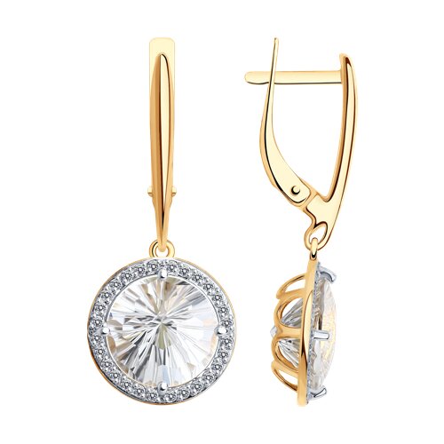 Серьги из красного золота с горным хрусталём и фианитами