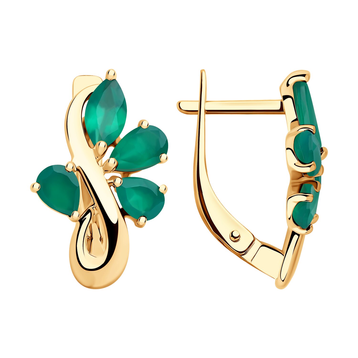 Нежные золотые серьги 585 пробы в элегантном сиянии агата идеальны для того, чтобы превратить обычный день в праздничный. Сочетание красного золота и глубокого зеленого цвета камней выглядит невероятно изысканно, дорого, но в то же время сдержанно и уместно. Украшение представлено ювелирным брендом SOKOLOV.