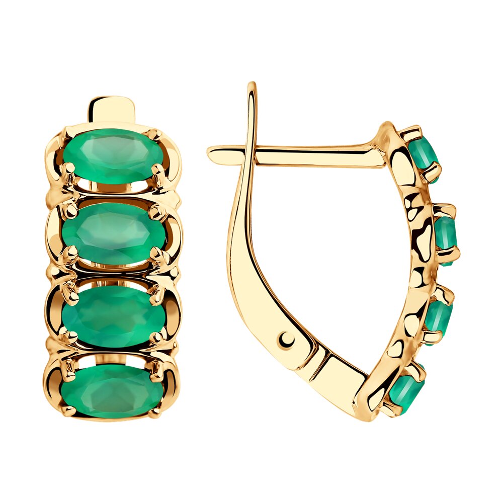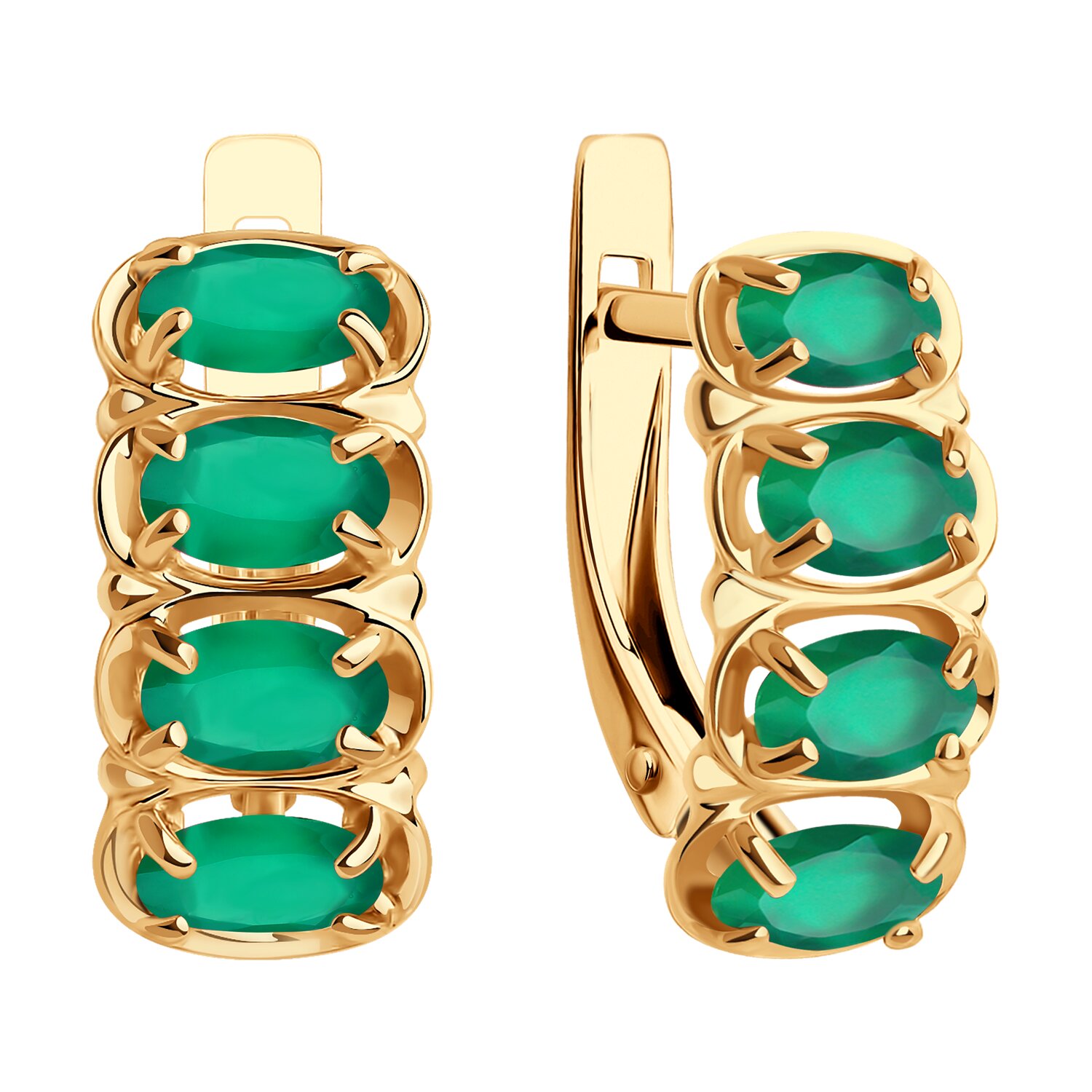 Чувственные золотые серьги 585 пробы в элегантном сиянии агата идеальны для того, чтобы превратить обычный день в праздничный. Сочетание красного золота и глубокого зеленого цвета камней выглядит невероятно изысканно, дорого, но в то же время сдержанно и уместно. Украшение представлено ювелирным брендом SOKOLOV.