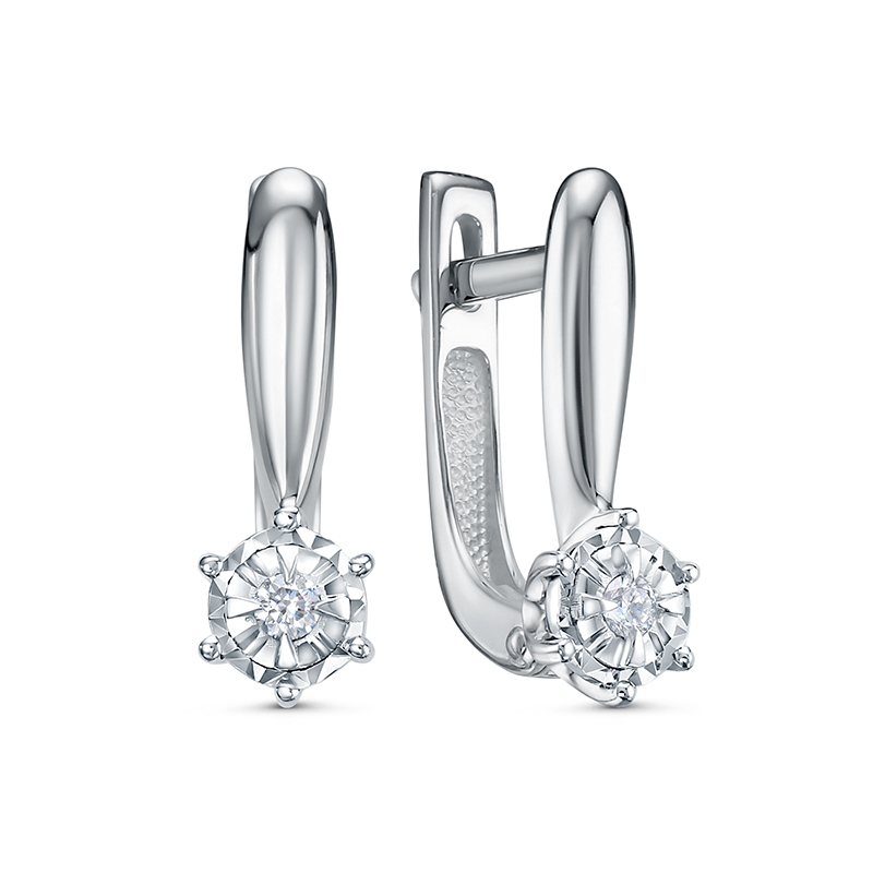 Изящные серьги из белого золота 585 пробы с натуральными бриллиантами и алмазной гранью станут привлекательной изюминкой женственного образа. Серьги отлично подойдут к любому повседневному стилю, и подчеркнут утонченный вкус владелицы. Тип замка - английский, надежный и комфортный в использовании. Приобретайте ювелирное украшение по выгодным ценам в магазинах Мир Золота.
