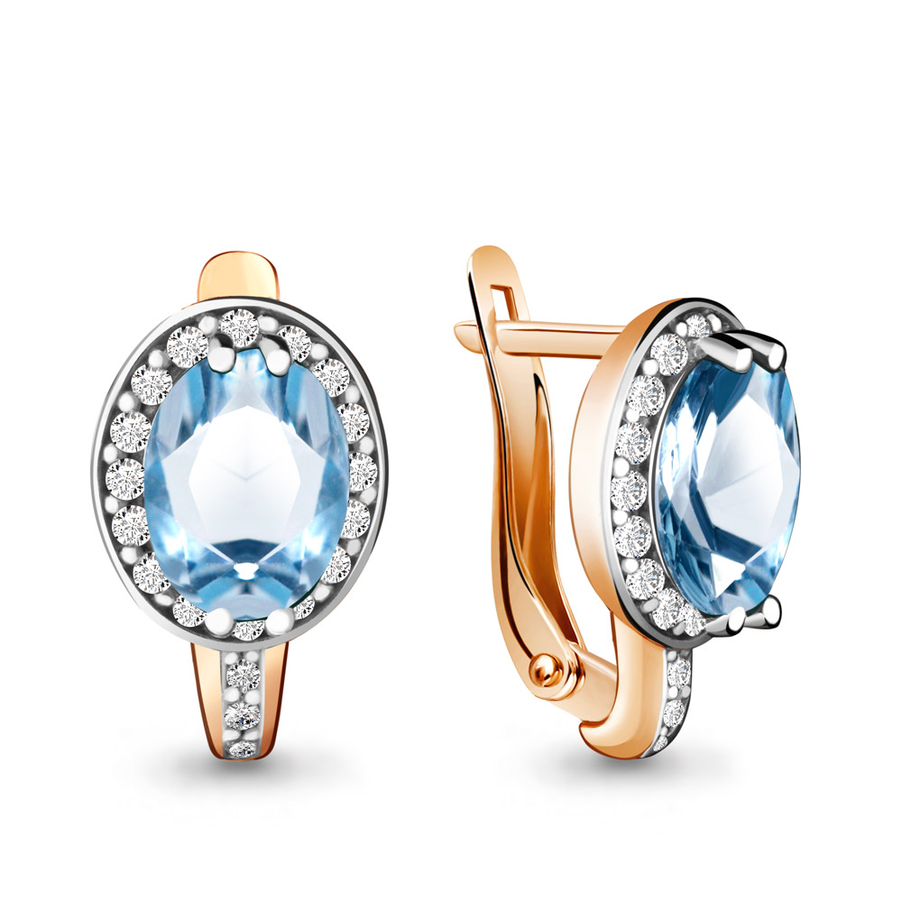 Стильные женские серьги с топазом swiss и фианитами выполнены из красного золота 585 пробы в привлекательном дизайне. Аккуратные, комфортные серьги с яркими акцентами ювелирных камней станут прекрасным дополнением для любого образа. Тип замка - английский, надёжно фиксирует украшение. Приобретайте ювелирные серьги по выгодным ценам в магазинах Мир Золота.