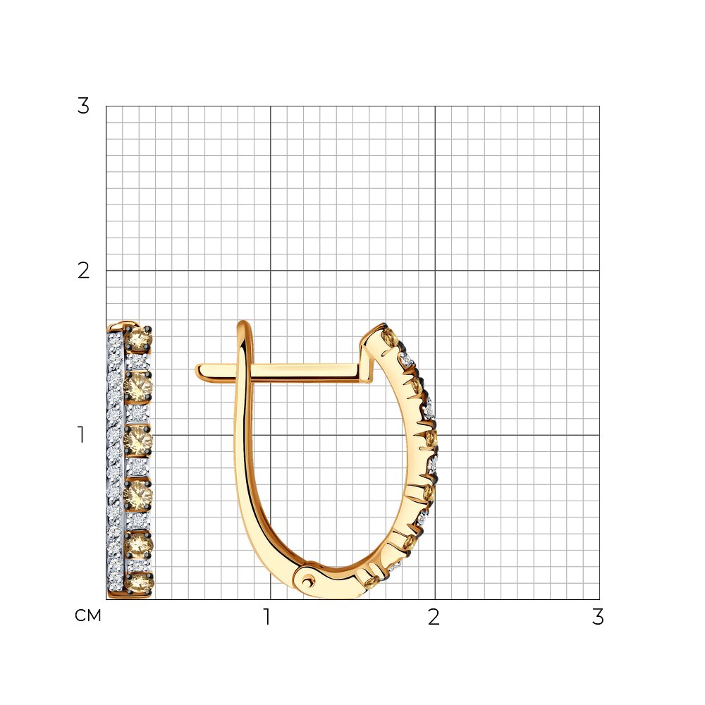 Серьги из красного золота 585 пробы с дорожками прозрачных и коньячных бриллиантов станут изысканным дополнением современного образа. Серьги с завораживающим блеском драгоценных камней очень женственно и привлекательно смотрятся, и подчеркнут утонченный вкус владелицы. Тип замка - английский, комфортный и надежный в использовании. Приобретайте ювелирное украшение с бриллиантами по выгодной цене в магазинах Мир Золота.