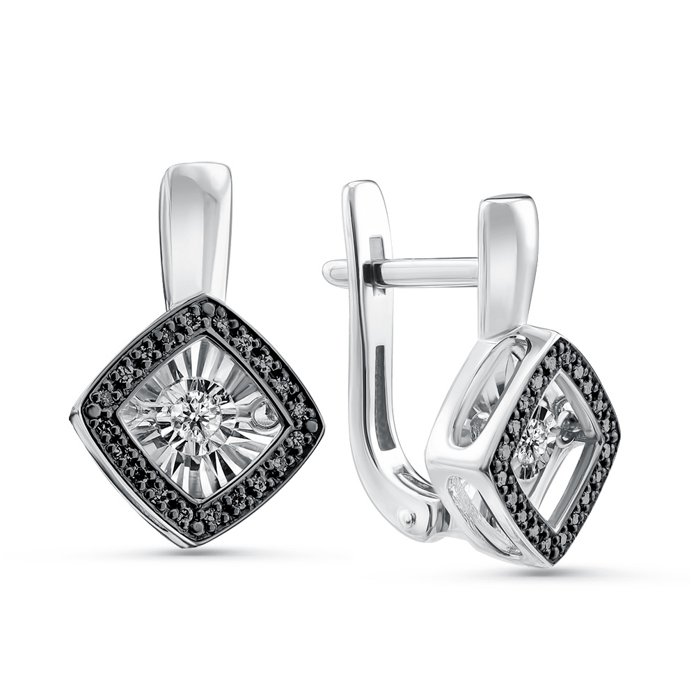 Серьги из белого золота 585 пробы с прозрачными и черными бриллиантами сделают образ владелицы более ярким и выразительным. Драгоценные бриллианты с подвижным креплением, в обрамлении притягательного блеска черных камней, завораживают своим игривым сиянием. Украшение станет изысканной деталью женского образа, наполнив его недостающим блеском и очарованием. Приобретайте серьги выгодно в магазинах Мир Золота.