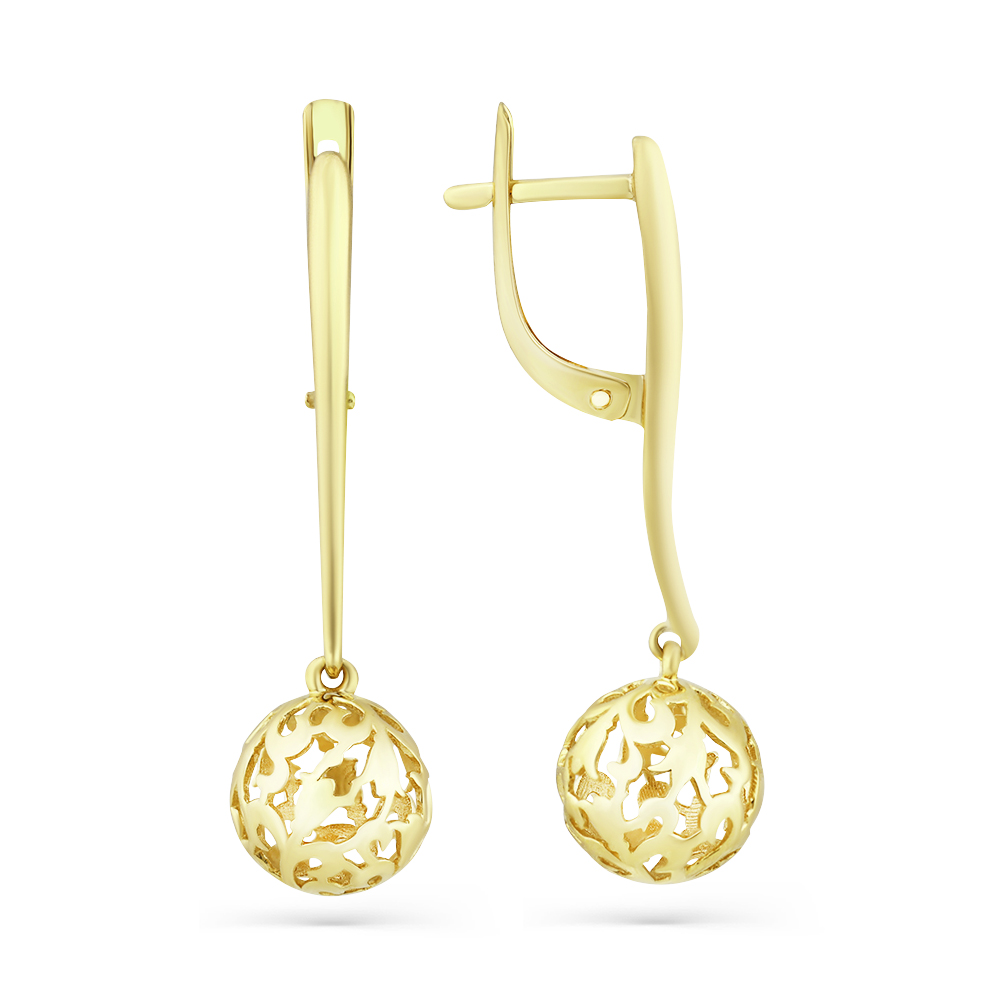 Серьги из желтого золота 585 пробы с подвесными элементами станут изысканным дополнением женского образа. Удлиненные серьги с изящным декором из драгоценного золота сделают образ владелицы более ярким и стильным. Приобретайте серьги с комфортным и практичным английским замком по выгодным ценам в ювелирных магазинах Мир Золота.