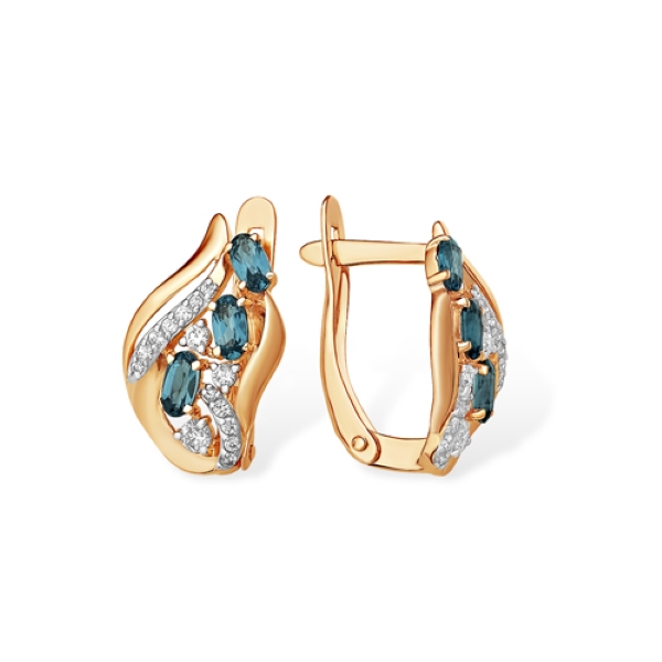 Превосходные серьги из красного золота 585 пробы с топазами Лондон и фианитами смотрятся благородно и изысканно. Завораживающий блеск камней восхищает своей красотой и привлекает внимание, украшение эффектно дополнит стильные современные образы. Тип замка - английский, надёжно зафиксирует украшение. Приобретайте серьги в подарок по выгодной цене в магазинах Мир Золота.