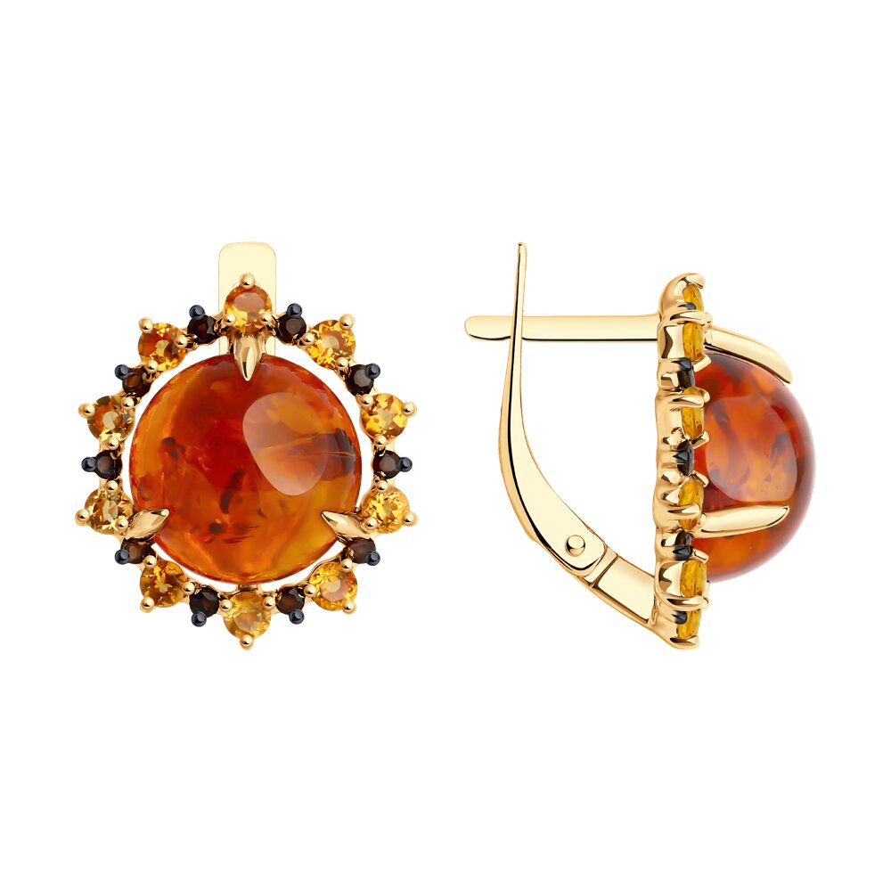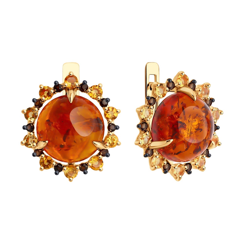 Серьги из красного золота с миксом камней раухтопаза, цитрина и янтаря покоряют своей красотой и очарованием. Украшение с неповторимым блеском камней станет заметным акцентом обворожительного женственного образа, подчеркнув прекрасный вкус обладательницы. Приобретайте серьги в подарок по выгодным ценам в магазинах Мир Золота.