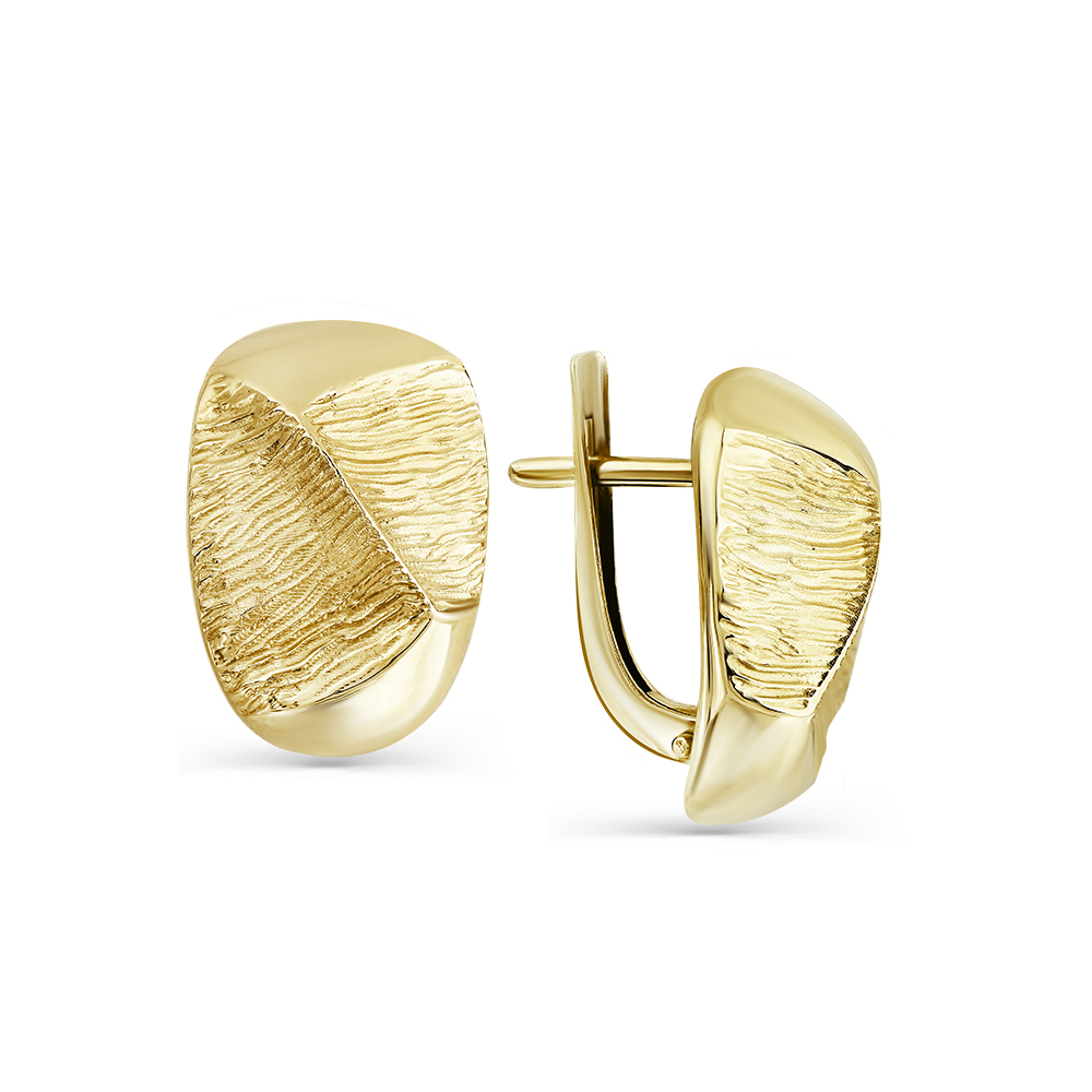 Серьги из желтого золота 585 пробы с рельефным декором без вставок будут прекрасным выбором для подарка. Стильное украшение из благородного золота лимонного оттенка станет модной изюминкой современного образа, подчеркнув изысканный вкус обладательницы. Приобретайте серьги с комфортным английским замком по выгодной цене в магазинах Мир Золота.
