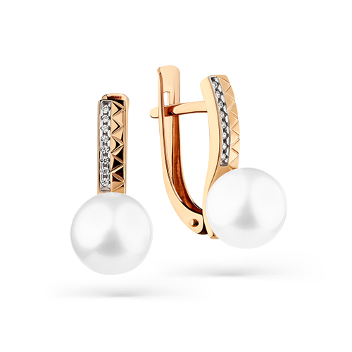 Замечательные серьги из красного золота 585 пробы эффектно декорированы превосходным белым жемчугом и прозрачными фианитами. Белоснежный жемчуг обращает на себя внимание, сияющие дорожки фианитов дополняют нежный блеск жемчуга. Элегантная красота камней вдохновляет на создание неповторимого женственного образа. Приобретайте серьги по выгодной цене в магазинах Мир Золота.