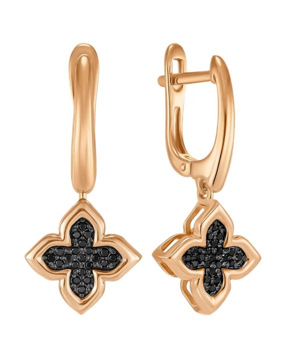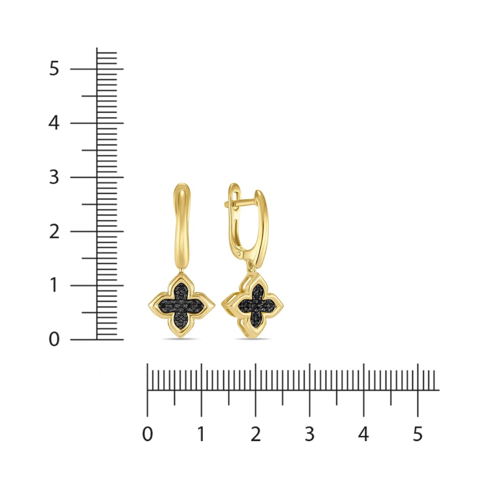 Великолепные серьги с подвесками из желтого золота 585 пробы выполнены в актуальном дизайне в виде четырехлистного клевера с россыпью черных бриллиантов. Флористические мотивы украшения с эффектным блеском черных камней подчеркнут яркую индивидуальность, и станут восхитительным акцентом женского образа. Приобретайте украшение в подарок по выгодной цене в магазинах Мир Золота.