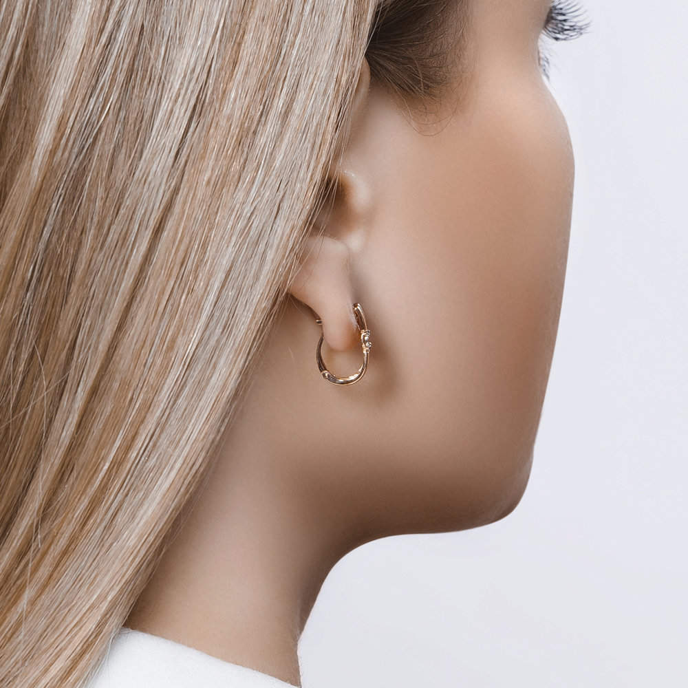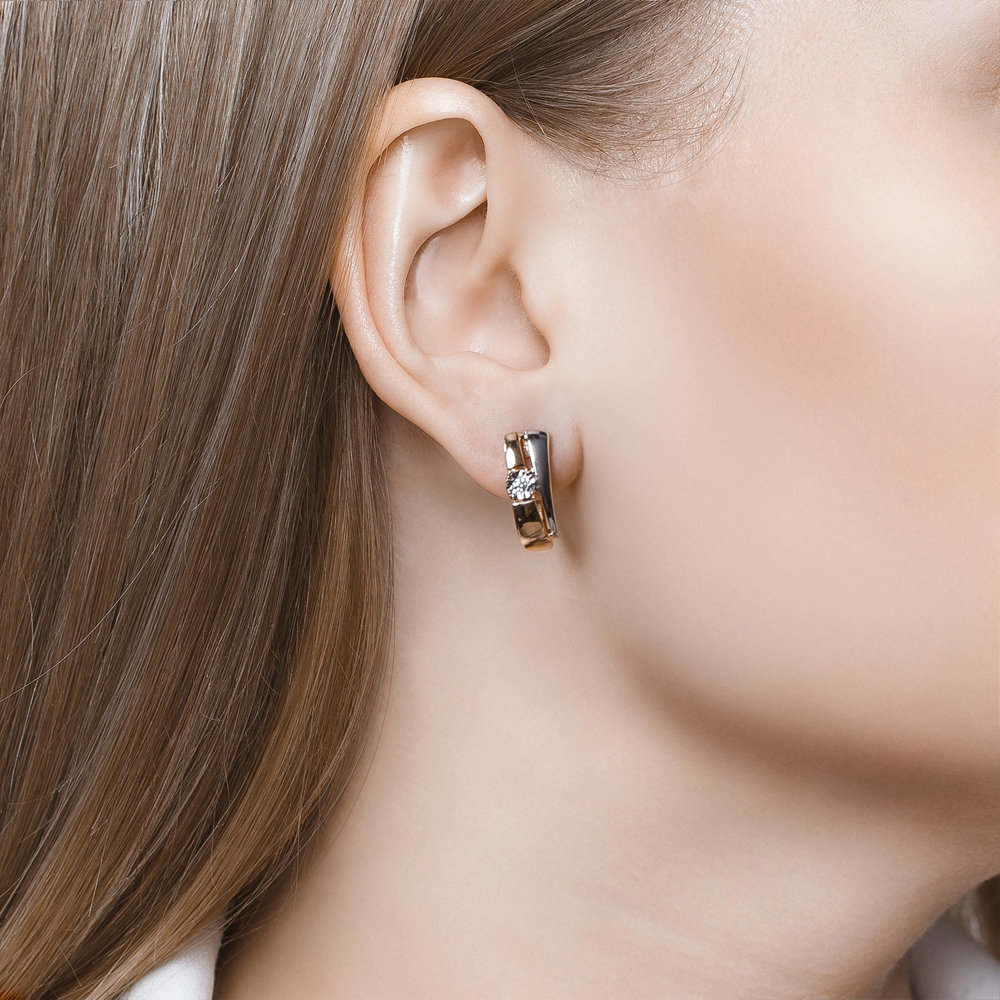 Эффектные серьги из красного золота высшей пробы с бриллиантами – пример того, как тренды гармонируют с классикой. Игра линий, контраст белого и красного золота обеспечивают современный дизайн украшения. Вставка из белого золота подчёркивает сияние бриллианта, визуально увеличивая его размер. Для поистине блестящего выхода!