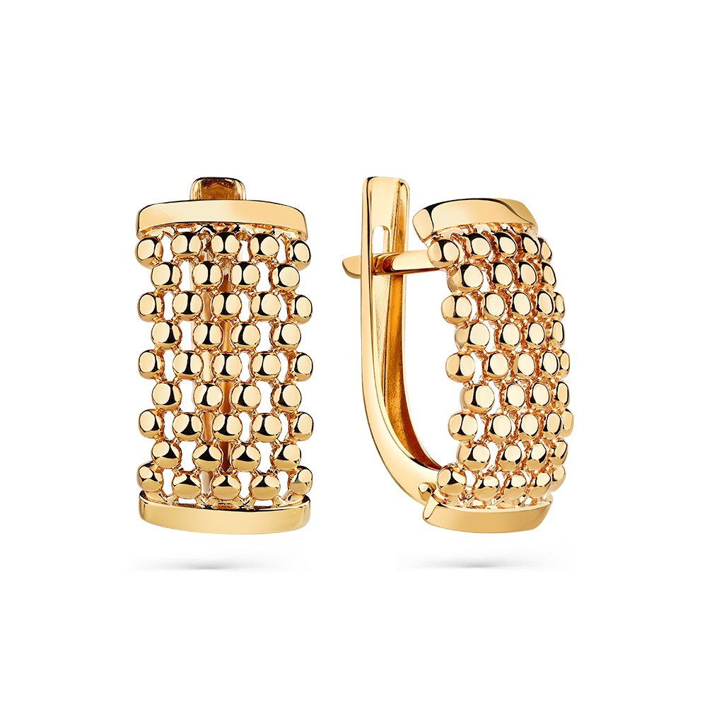 Женские серьги фантазийного дизайна без дополнительных вставок выполнены из красного золота 585 пробы. Объемное украшение оригинально смотрится, и комфортно в повседневной носке. Серьги станут актуальным дополнением современного образа, подчеркнув изысканный вкус обладательницы. Приобретайте ювелирное украшение в подарок по выгодной цене в магазинах Мир Золота.