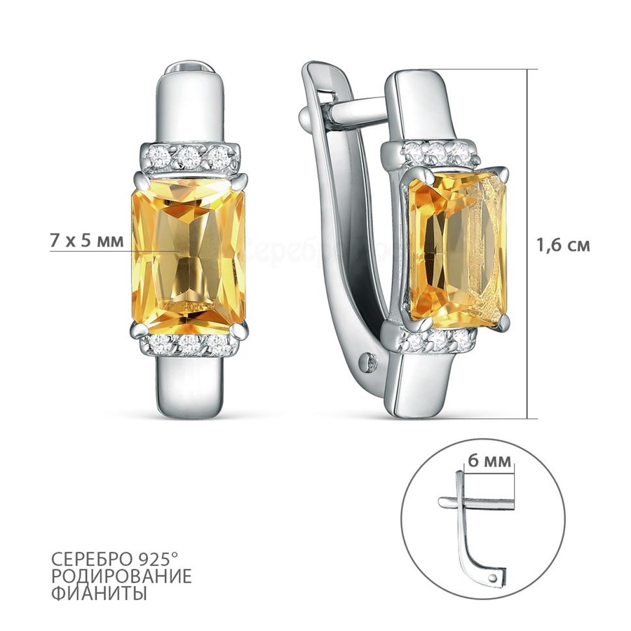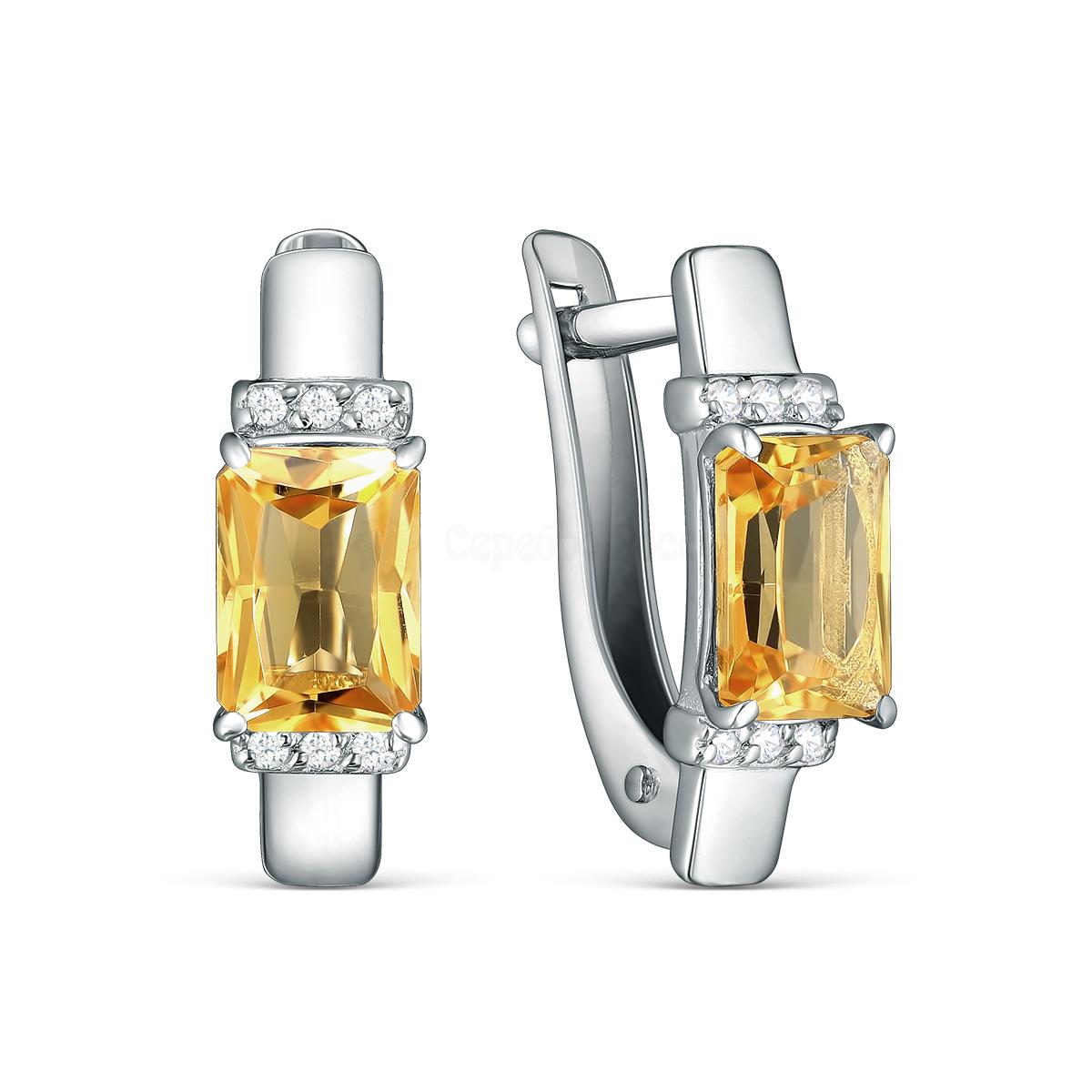 —Серьги из серебра с цитринами и фианитами
