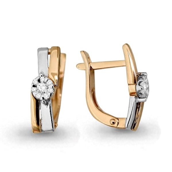 Серьги из комбинированного золота 585 пробы с центрально расположенными акцентными бриллиантами классической круглой огранки. Сочетание белого и красного золота делает эти серьги по-настоящему сияющими и воздушными. Золотые линии, обрамляющие 16 бриллиантов, подчеркивают роскошь драгоценнных камней. Серьги имеют удобный английский замок. Купите изысканные Серьги из красного золота с бриллиантами по выгодной цене в магазинах Мир Золота.