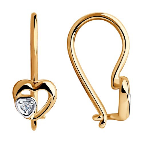 Симпатичные детские сережки в виде миниатюрных сердечек из красного золота 585 пробы, украшенные капелькой сияющих фианитов. Легкие нежные серьги комфортно сидят на ушке, имеют удобную застежку, и станут идеальным украшением для девочки на каждый день. Приобретайте очаровательные сережки в подарок по выгодным ценам в магазинах Мир Золота.