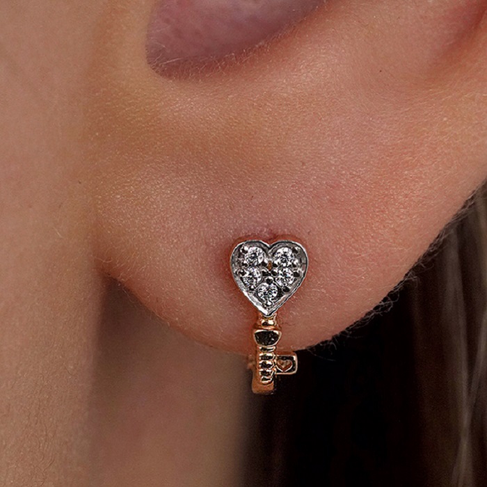 —Серьги «Ключики» из красного золота 585 пробы с фианитами