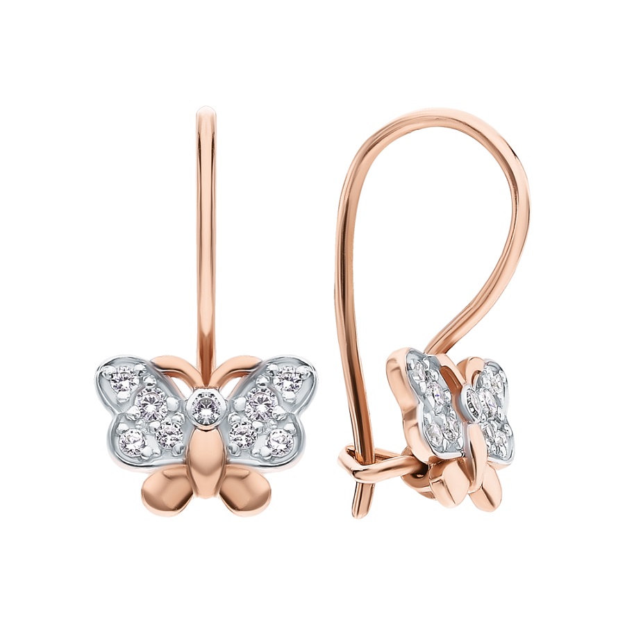 —Серьги «Бабочки» из красного золота 585 пробы с фианитами