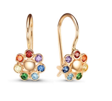 Яркие детские серьги с разноцветными фианитами выполнены из красного золота 585 пробы. Милые сережки с эффектным сиянием цветных камней не оставят ребенка равнодушным, и вызовут восторженные и радостные эмоции. Великолепные сережки станут любимым украшением на многие годы. Приобретайте очаровательные детские украшения в подарок выгодно в магазинах Мир Золота.