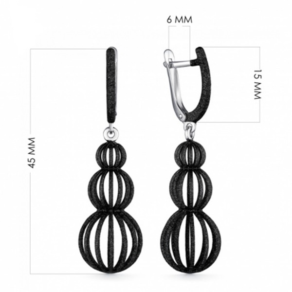 Удлиненные серьги необычного ювелирного дизайна из родированного серебра 925 пробы с объемными подвесками и уникальной черной эмалью. Стильное украшение с фактурной эмалью станет эффектной деталью модного образа, и подчеркнет яркую индивидуальность владелицы. Пополните свою коллекцию этим оригинальным приобретением, покупайте серьги по выгодной цене в магазинах Мир Золота.