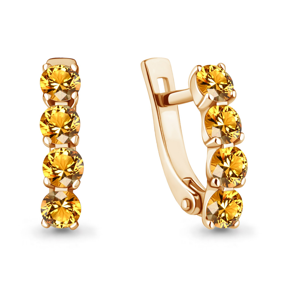 Привлекательные серьги украшены дорожками с цитринами, выполнены из красного золота 585 пробы. Кристальный блеск камней солнечного оттенка не оставит женщину равнодушной, актуальное украшение станет универсальным аксессуаром для любого образа владелицы. Приобретайте серьги для себя или в подарок по выгодной цене в магазинах Мир Золота.