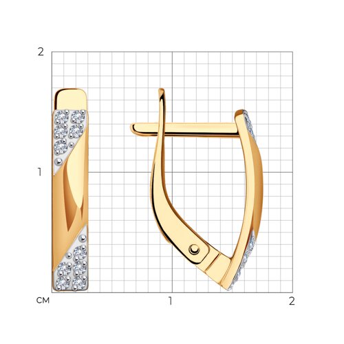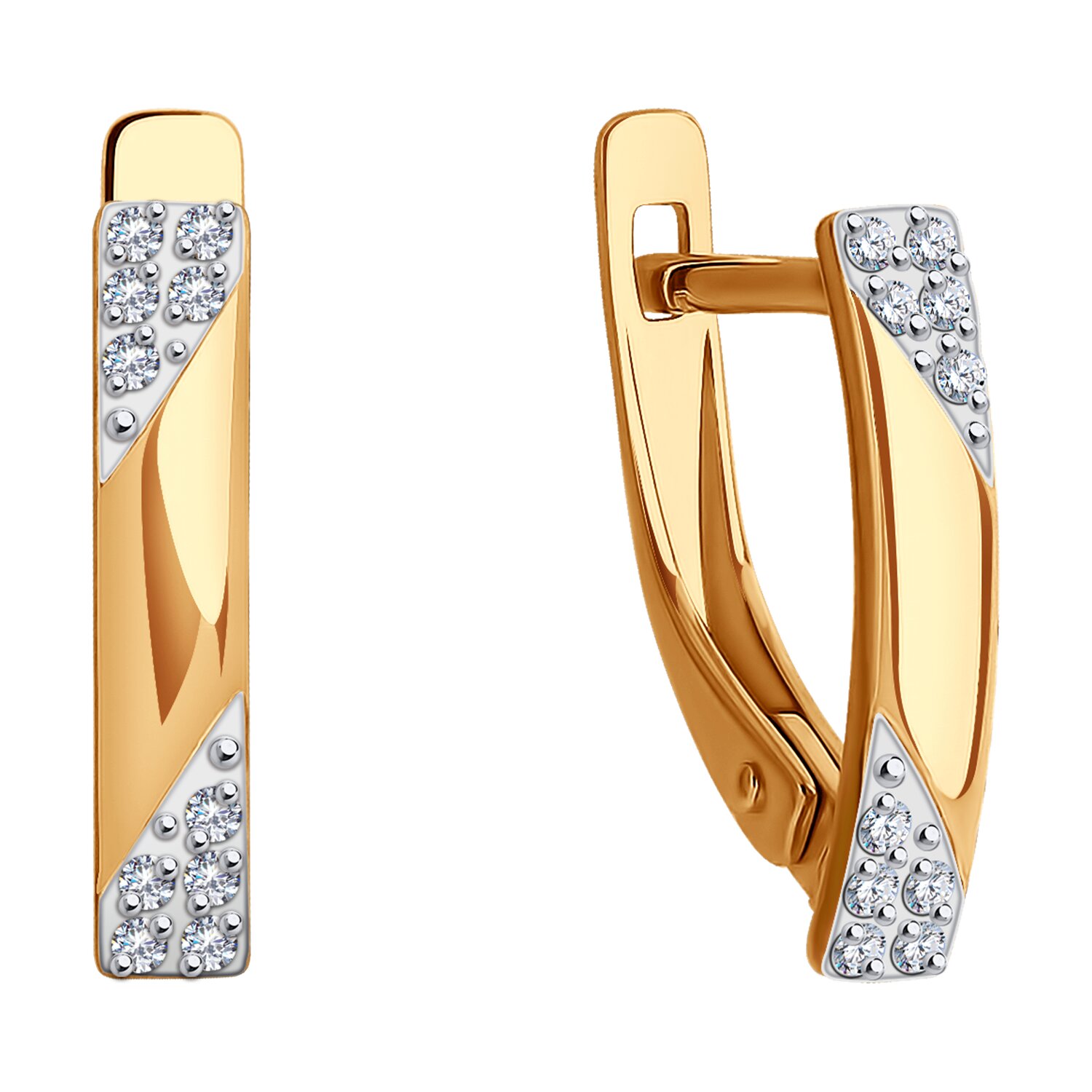 Стильные серьги из красного золота 585 пробы с композицией из прозрачных фианитов отлично дополнят современные образы. Украшение с кристальным сиянием камней станет достойным подарком, и подчеркнет безупречный вкус обладательницы. Приобретайте серьги с надежным и комфортным английским замком по выгодной цене в магазинах Мир Золота.