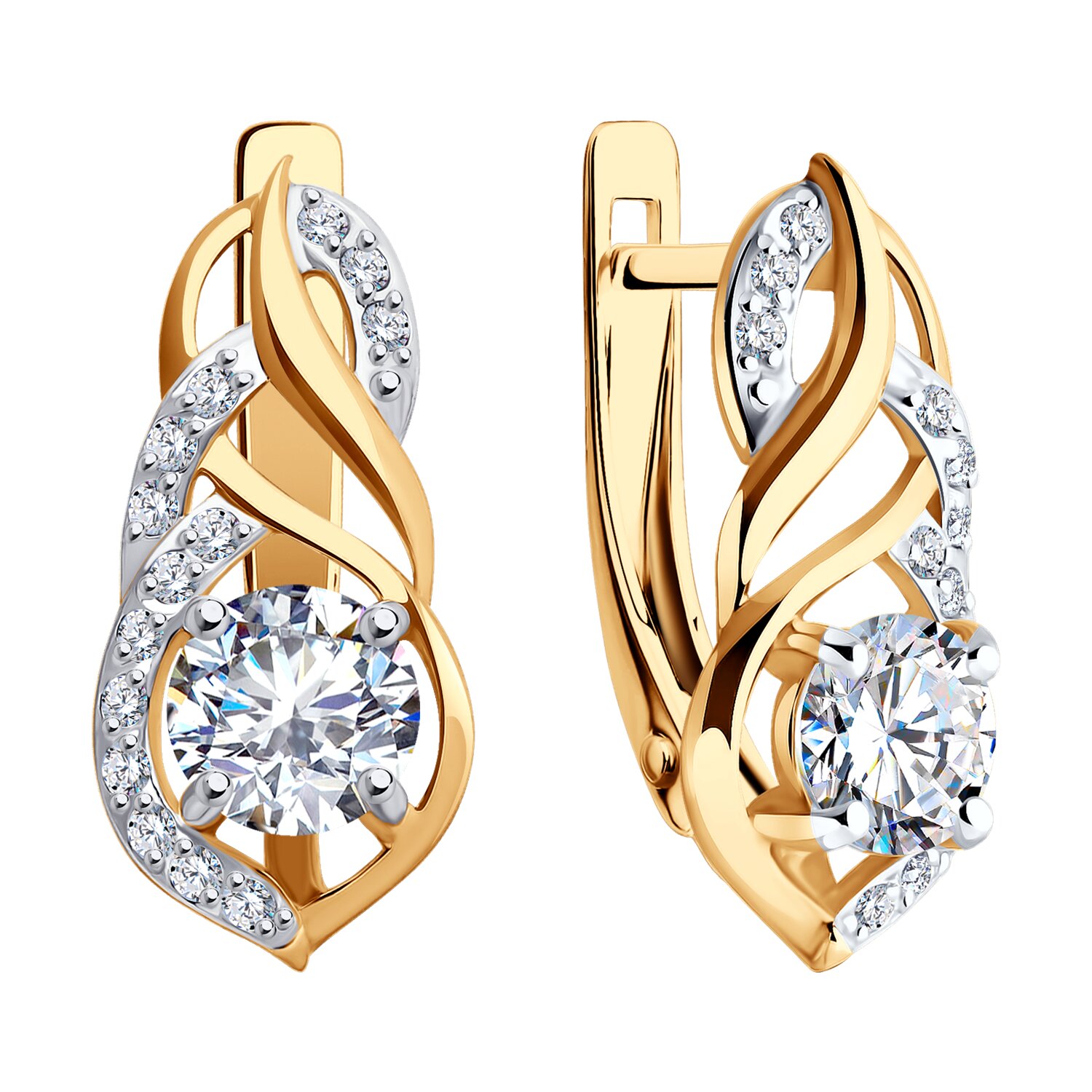 Блистательные женские серьги выполнены из красного золота 585 пробы. Привлекательные серьги декорированы россыпью сверкающих прозрачных фианитов. Яркое украшение стильно дополнит любой наряд и станет изюминкой выбранного образа. Приобретайте прекрасные серьги SOKOLOV в подарок выгодно в магазинах Мир Золота.
