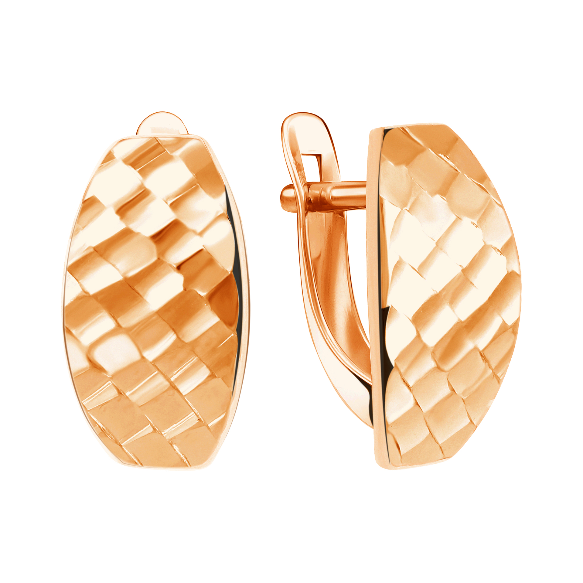 Трендовые массивные серьги из красного золота с алмазной гранью. Насыщенный теплый оттенок золота гармонирует с искристым блеском граней, придающих украшению уникальную красоту и магнетизм. Интересный дизайн позволяет обладательнице заявить о своем чувстве стиля и яркой индивидуальности. Надевая эти серьги, каждая женщина ощутит себя настоящей звездой любого события.