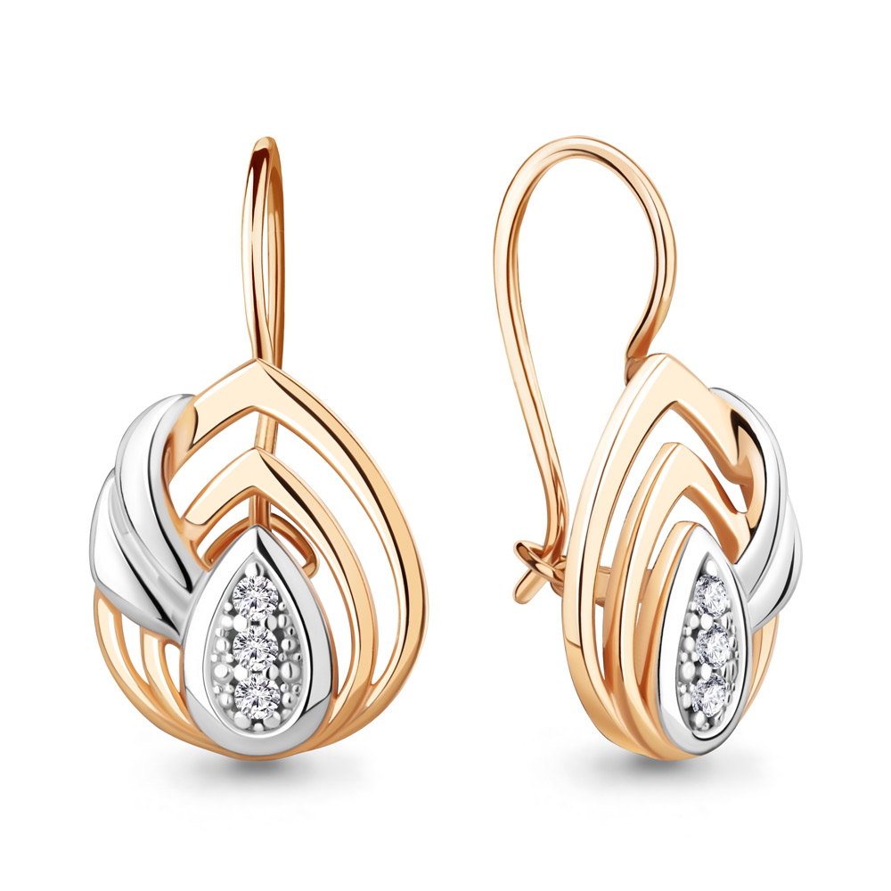 Серьги из комбинированного золота с фианитами