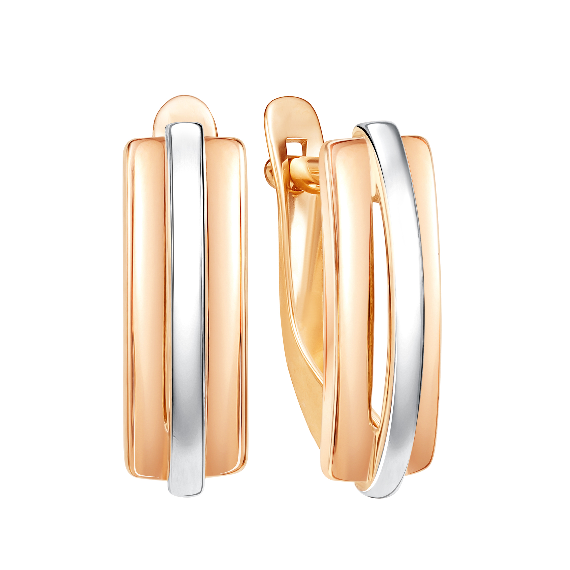 Серьги из красного золота с акцентными вставками белого золота — это стильный и оригинальный аксессуар, который сочетает в себе теплоту одного металла и холодную элегантность другого. Контраст между двумя цветами золота создает уникальный визуальный эффект, добавляя изделию динамики и современности. Акцентные линии белого золота подчеркивают дизайн и придают серьгам особую изысканность. Эти серьги станут великолепным дополнением к любому образу, будь то повседневный лук или праздничный наряд.