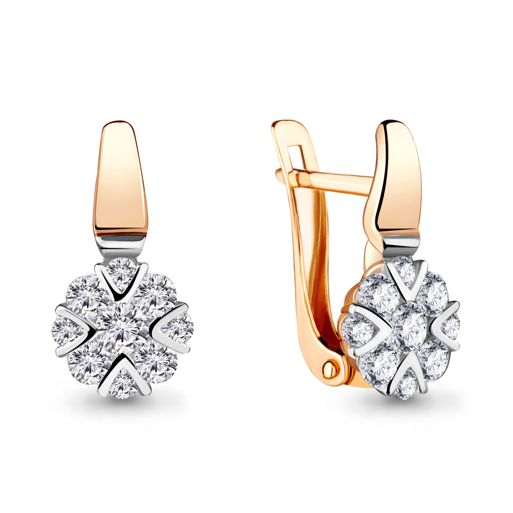 Круглые серьги из красного золота с фианитами, закрепленными в белом золоте — изысканное сочетание цвета и фактуры. Теплый оттенок красного золота гармонично сочетается с холодным блеском белого, создавая уникальный контраст. Фианиты, сверкающие в такой оправе, подчеркивают элегантность и утонченность, делая эти серьги настоящим произведением ювелирного искусства.