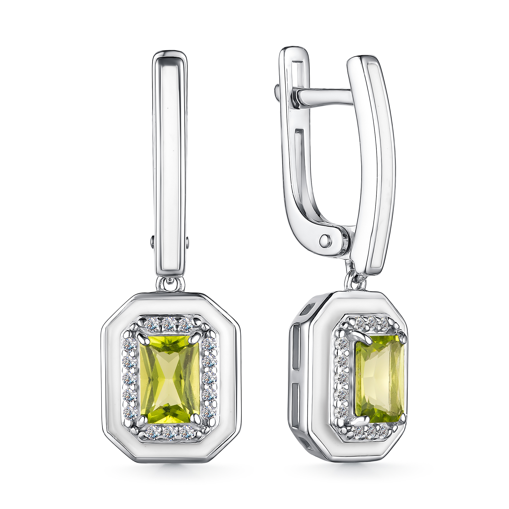 —Серьги из серебра с хризолитом и фианитами