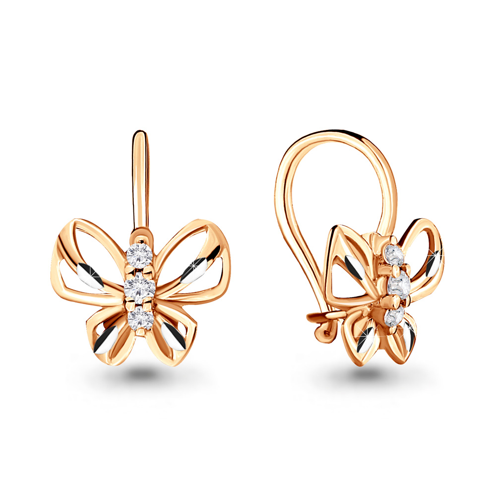 Очаровательные детские серьги из красного золота выполнены в форме бабочек, символизирующих легкость и радость. Прозрачные фианиты добавляют украшению яркости и волшебства. Серьги идеально подойдут для маленьких принцесс, подчеркивая их юность и непосредственность. Если вы ищете подарок для девочки, такие серьги станут отличным выбором!
