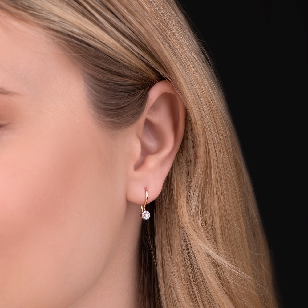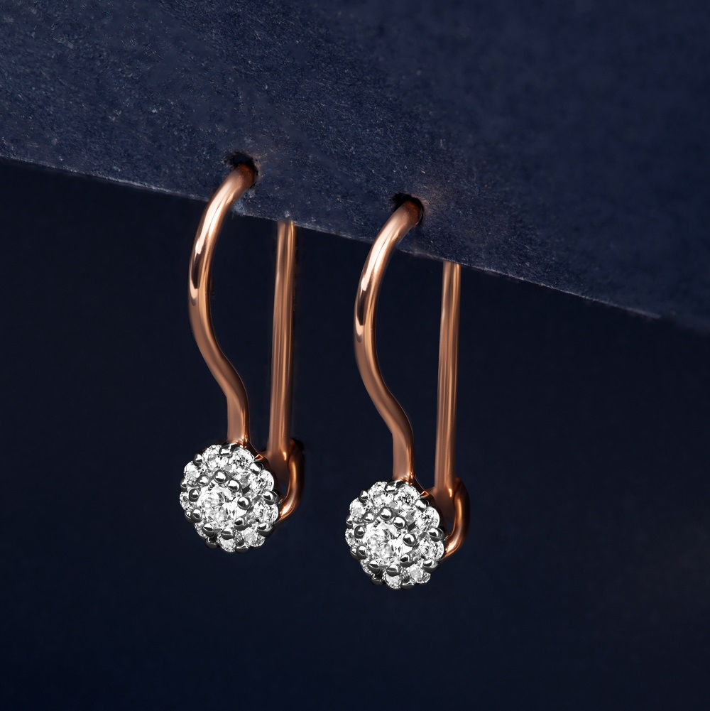 Серьги изготовлены из красного золота, придающего им теплый и благородный оттенок. Фианиты, украшающие изделие, сверкают яркими бликами, добавляя серьгам роскошь и элегантность. Французский замок обеспечивает надежную фиксацию и удобство носки, позволяя наслаждаться красотой аксессуара.