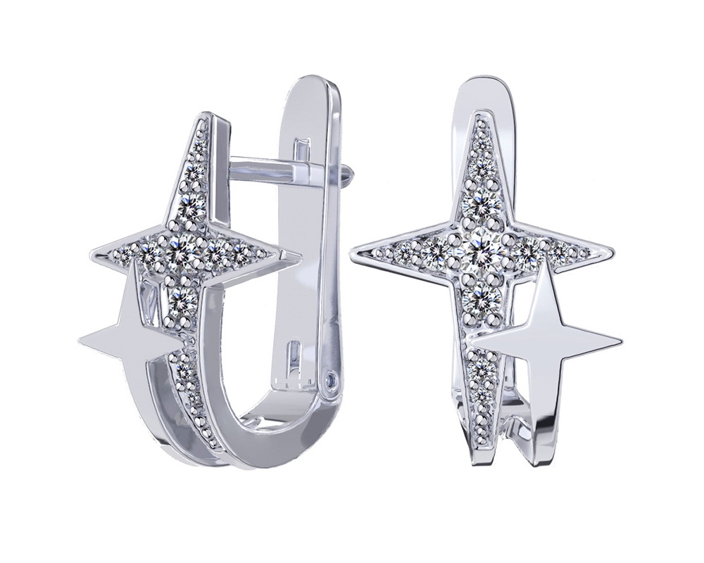 Серебряные серьги с фианитами в форме четырехконечных звезд — это оригинальный и стильный аксессуар. Звезды, украшенные блестящими фианитами, символизируют удачу и мечты, придавая образу романтичность и волшебство. Свет, отражающийся от фианитов, добавляет серьгам изысканный блеск, делая их идеальным выбором для создания незабываемого образа.