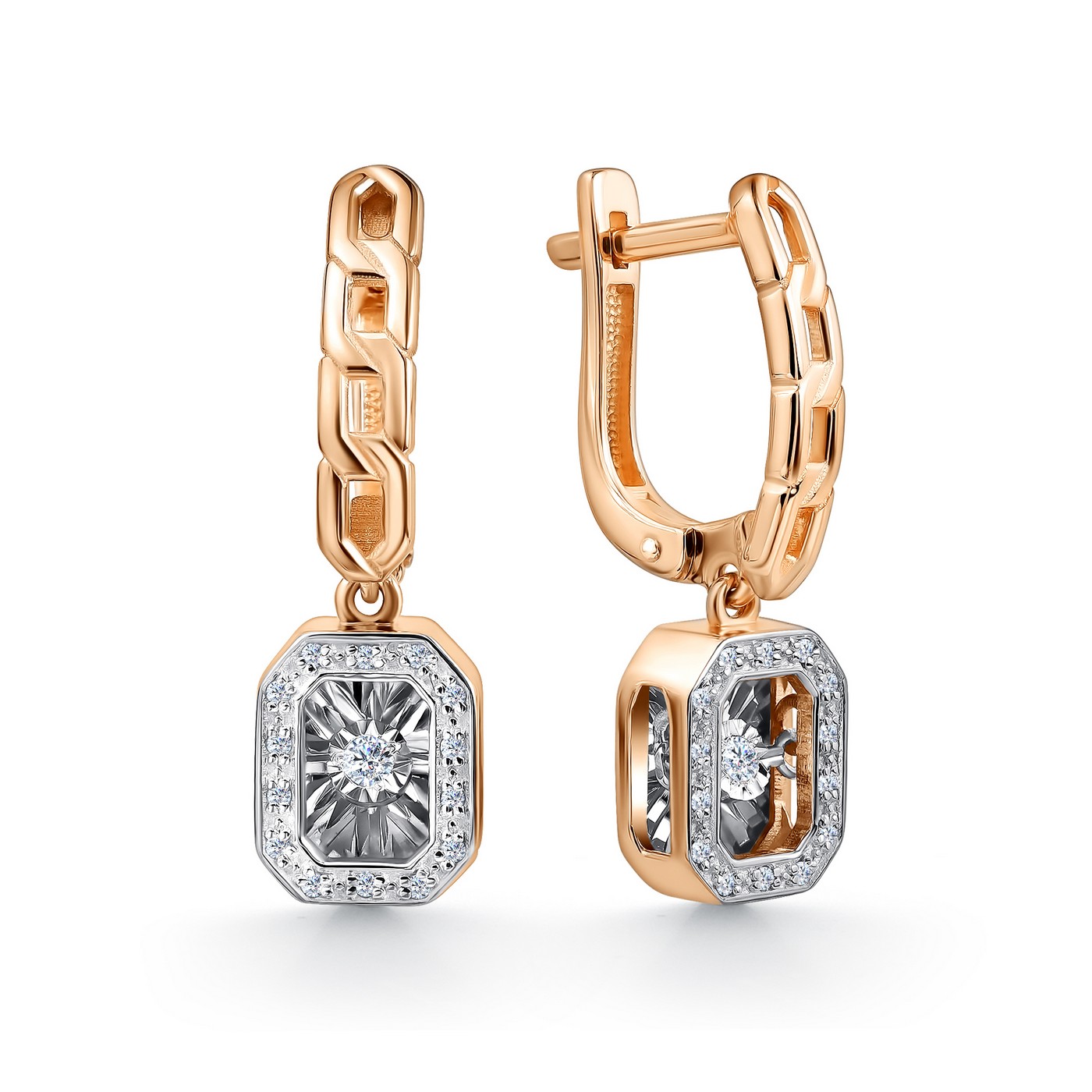 Изящные серьги из благородного золота воплощают утонченную роскошь и изящество. Красный металл смягчается искристостью множества сверкающих бриллиантов круглой огранки. Особое внимание привлекает центральные элегантные танцующие бриллианты, окружённые прочной оправой, создающие завораживающее шоу света и теней при каждом движении. Приобретайте ювелирное украшение в подарок по выгодным ценам в магазинах Мир Золота.