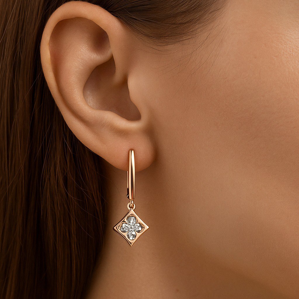 Выразительные серьги из красного золота 585 пробы поражают изяществом исполнения и минимальным количеством декоративных элементов. Драгоценный солирующий бриллиант заключен в особую подвижную конструкцию, позволяющую ему свободно вращаться и играть светом при каждом движении. Серьги с подвесками подойдут как для повседневного ношения, так и для завершения праздничного образа, добавляя образам обаятельную долю магии и загадочности.
