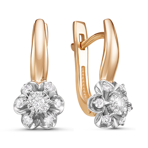 Чувственные серьги, выполненные в флористическом стиле, привлекают внимание необычным сочетанием теплого оттенка красного золота и прохладного блеска белого металла. Серьги напоминают распустившийся цветок с элегантными лепестками, украшенными танцующими бриллиантами в закрепке специальной конструкции из белого золота. Благодаря такой уникальной технике крепления, драгоценные камни создают волшебную иллюзию живых капель росы, блестящих на солнце, делая серьги воздушным и игривым украшением.