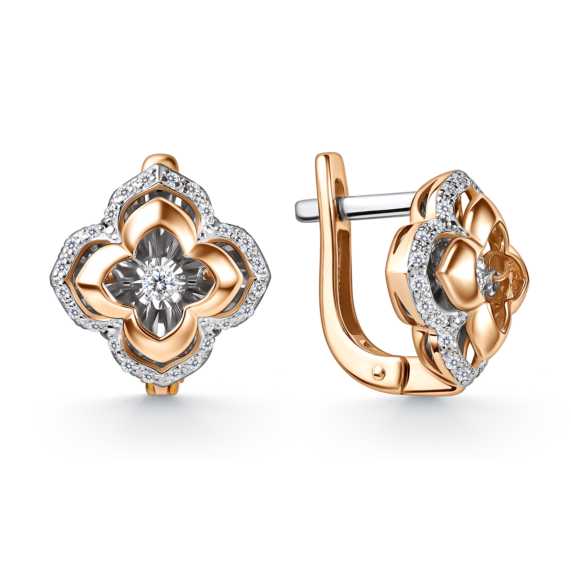 Серьги из комбинированного золота с танцующими бриллиантами