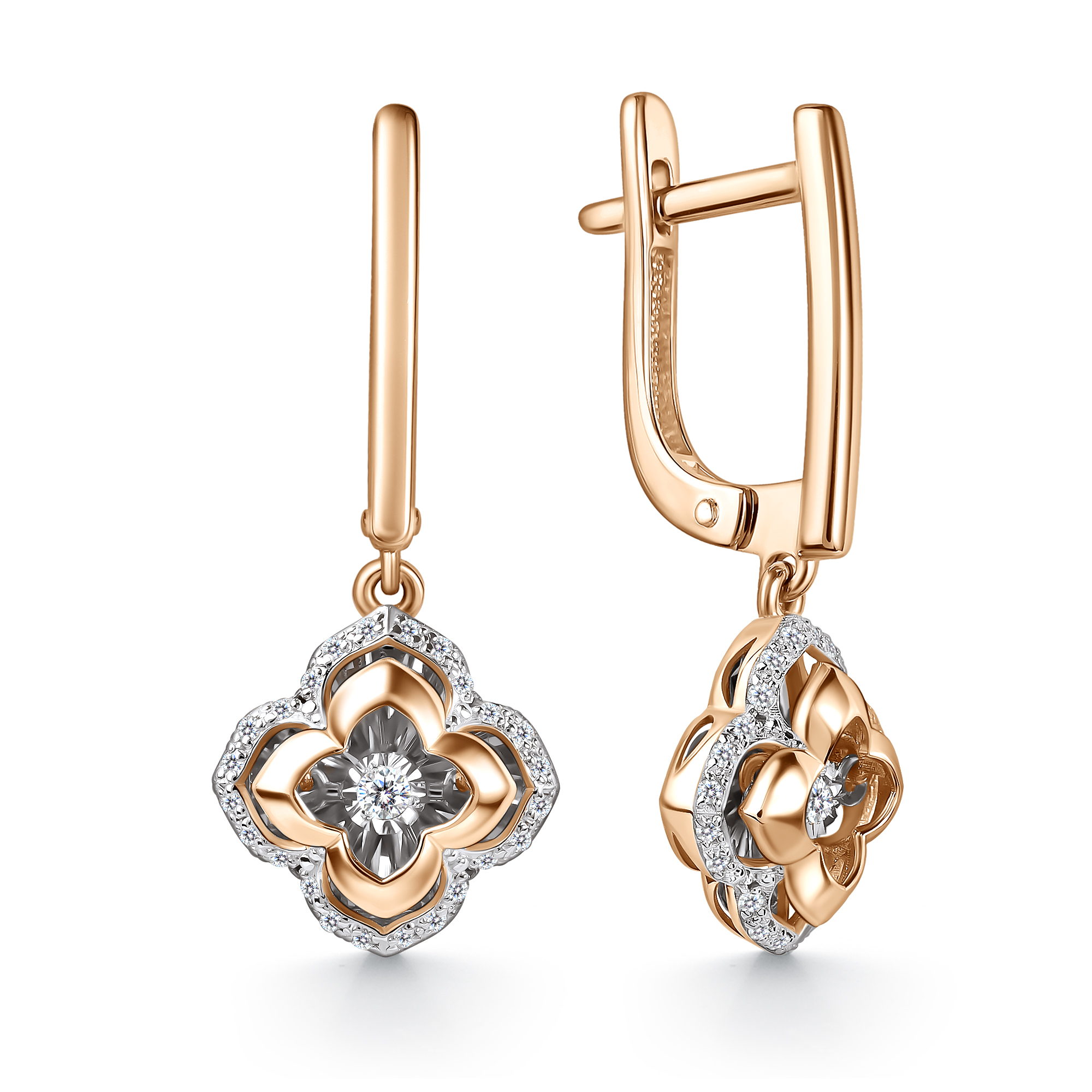 —Серьги из комбинированного золота с танцующими бриллиантами