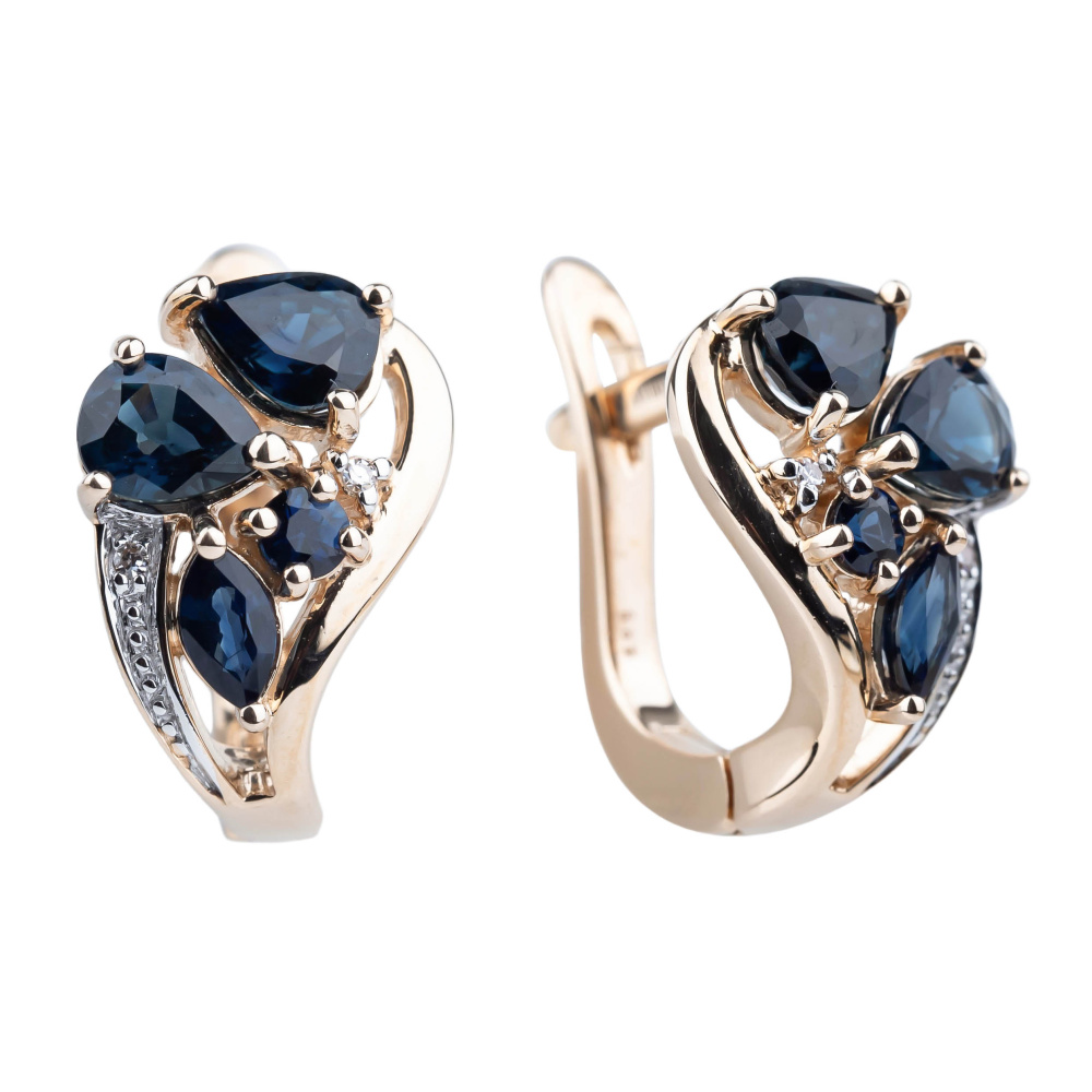 Серьги из красного золота с сапфирами и бриллиантами — это воплощение роскоши и аристократизма. Красивый тёплый оттенок золота выгодно подчёркивает глубину синих сапфиров, создавая гармоничное и выразительное цветовое сочетание. Огранённые алмазы изящно обрамляют центральные камни, даря дополнительные яркие вспышки и преломляя свет. Это идеальное украшение для особых случаев, которое подчеркнёт вашу уникальность и станет настоящей жемчужиной вашей коллекции.