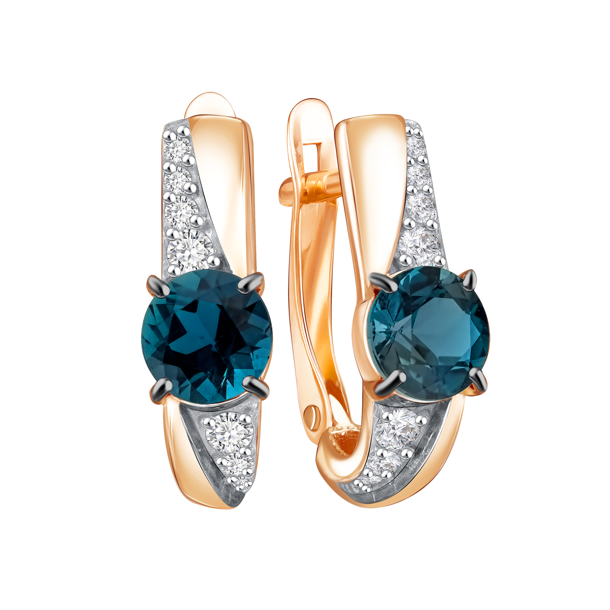 Серьги из красного золота с топазами и фианитами — роскошное украшение, воплощающее сочетание тепла драгоценного металла и выразительной игры цвета камней. Красное золото обладает мягким золотистым оттенком, создающим ощущение богатства и аристократизма. Синие топазы Лондон и прозрачные фианиты придают серьгам глубину и очарование, выгодно выделяя обладательницу среди окружения. Элегантный дизайн делает аксессуар универсальным выбором для торжественных случаев и ежедневного образа.