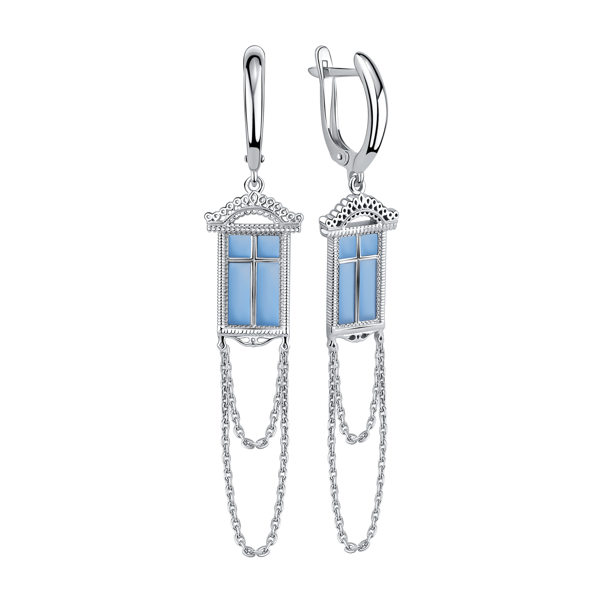 Серьги с цепочками в виде сказочных голубых окон напоминают деревенское окошко — символ уюта и волшебства. Идеальный тёплый подарок, который несёт в себе атмосферу родного дома. Эти серьги станут настоящим украшением любого образа, привнося нотку романтичности и ностальгии по простоте деревенской жизни. Мягкий голубой оттенок стекла создает впечатление солнечного луча, проникающего сквозь старое стекло, наполняя сердце теплом и светом. Тонкая работа ювелира позволяет ощутить каждую линию и деталь, погружаясь в воспоминания детства и мечтаний.