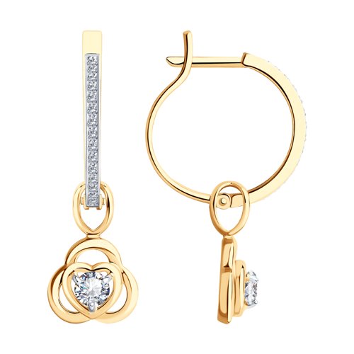 Нежные серьги из красного золота с прозрачными фианитами подарят особую привлекательность и очарование. Мягкий оттенок золота подчеркивает теплоту кожи, а сверкающие камни создают игру света, притягивая взгляды окружающих. Классический дизайн подходит как для повседневной носки, так и для вечерних мероприятий, дополняя ваш образ естественным блеском и роскошью. Такие серьги станут достойным дополнением коллекции ювелирных изделий и великолепным подарком любимой женщине.