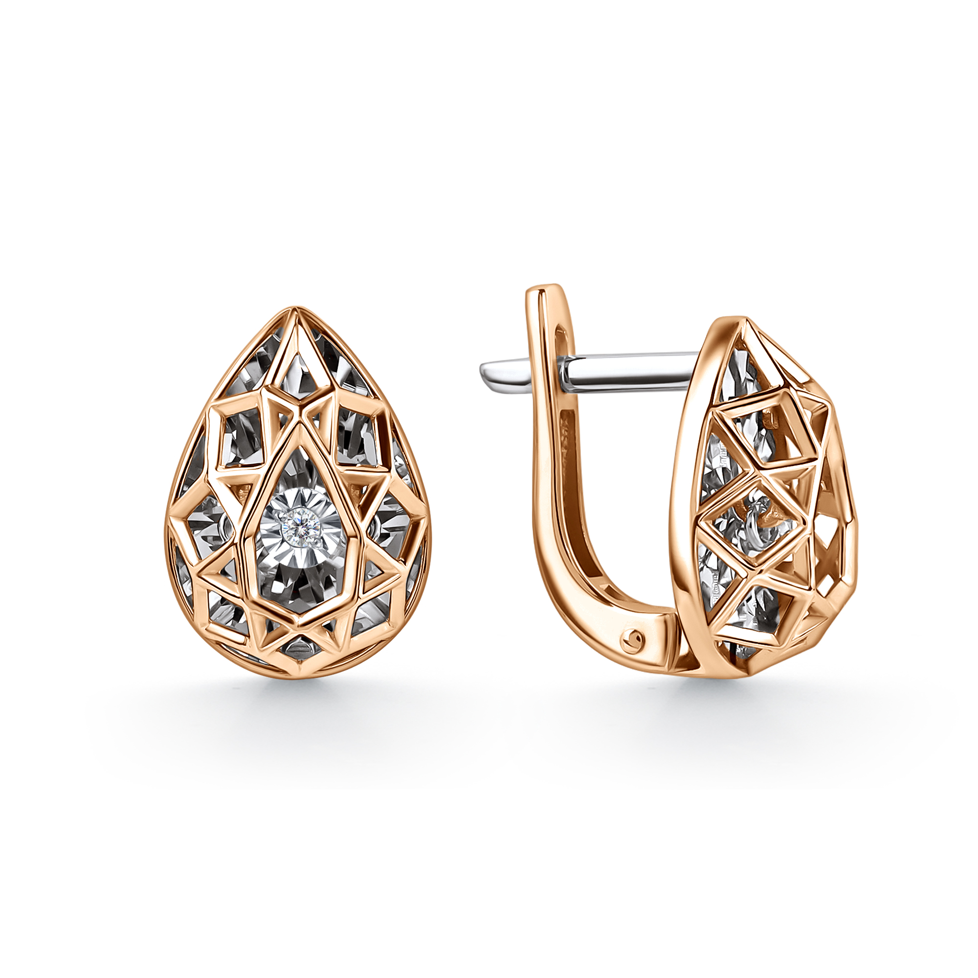 —Серьги из комбинированного золота с танцующим бриллиантом