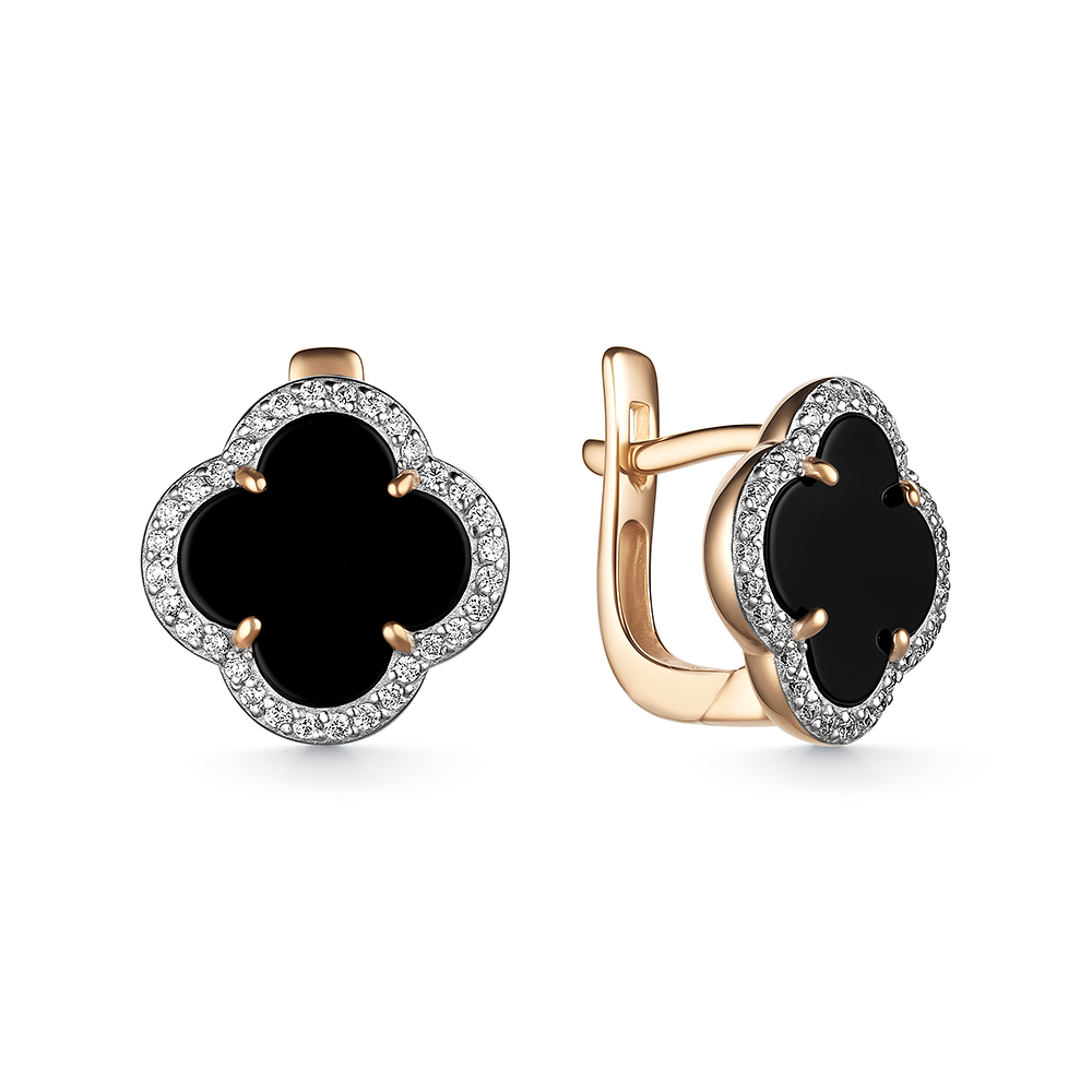 Серьги из красного золота с фианитами и ониксом