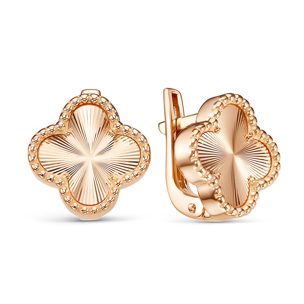 Серьги из красного золота 585 пробы покоряют сердца своим нежным дизайном и мастерством исполнения. Каждая деталь выполнена в стиле легендарного бренда Van Cleef & Arpels, символизируя удачу и процветание. Украшенные эффектной алмазной гранью, они переливаются тысячей огней, привлекая внимание и даря радость своей обладательнице. Легкость конструкции позволяет комфортно носить серьги каждый день, гармонично дополняя образ современной женщины.