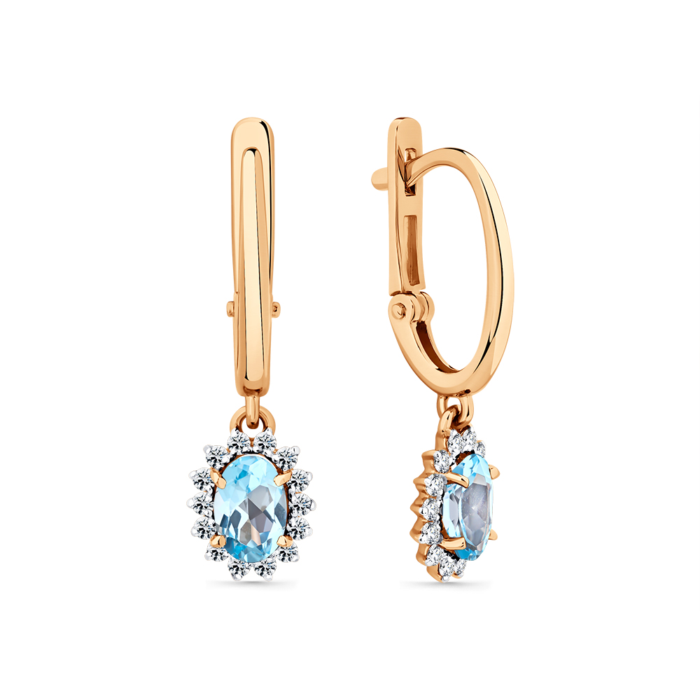 Серьги из красного золота с топазом и фианитами