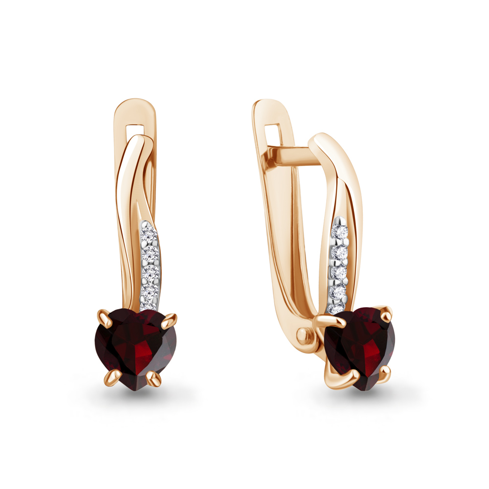 —Серьги из красного золота с гранатом и фианитами