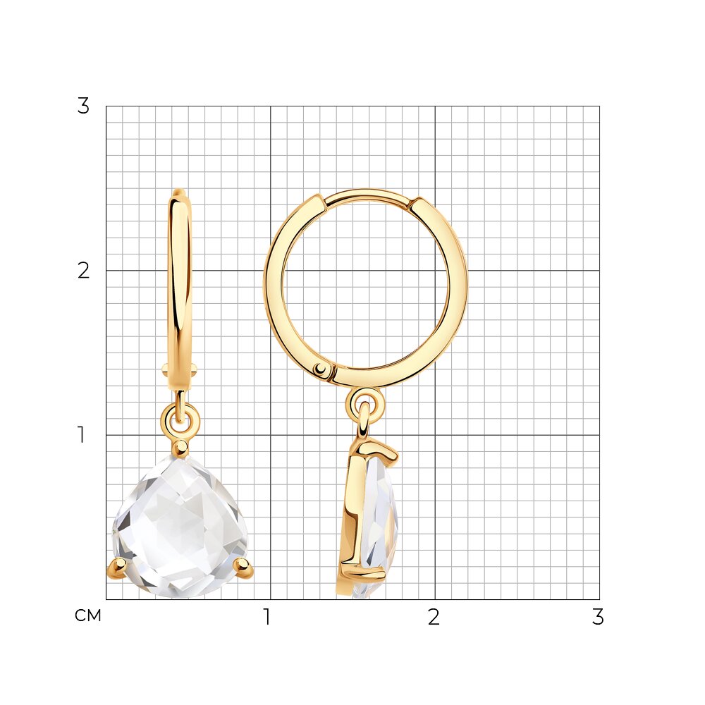 Серьги-конго с подвесками выполнены из красного золота 585 пробы с горным хрусталем. Изящные серьги с прозрачным сиянием полудрагоценных камней привлекательно смотрятся, и идеально подчеркнут красоту и женственность владелицы. Украшение можно легко комбинировать с другими аксессуарами. Приобретайте серьги для себя или в подарок по выгодным ценам в магазинах Мир Золота.