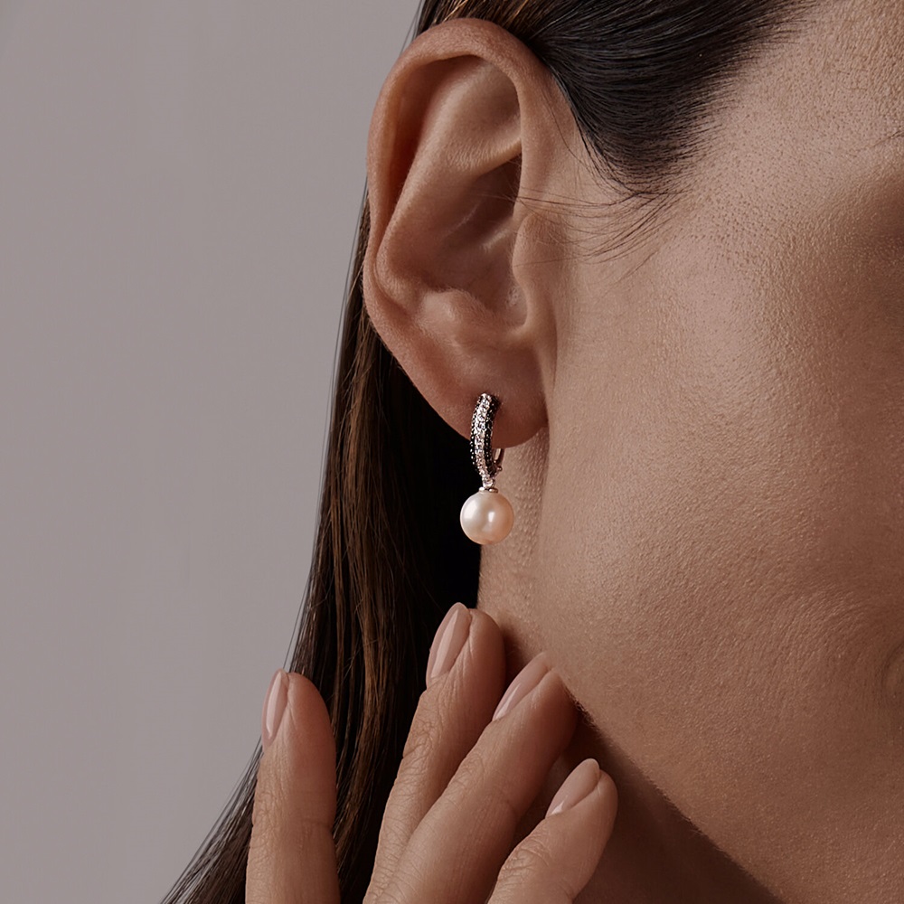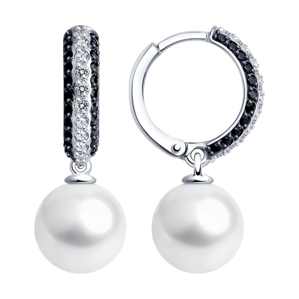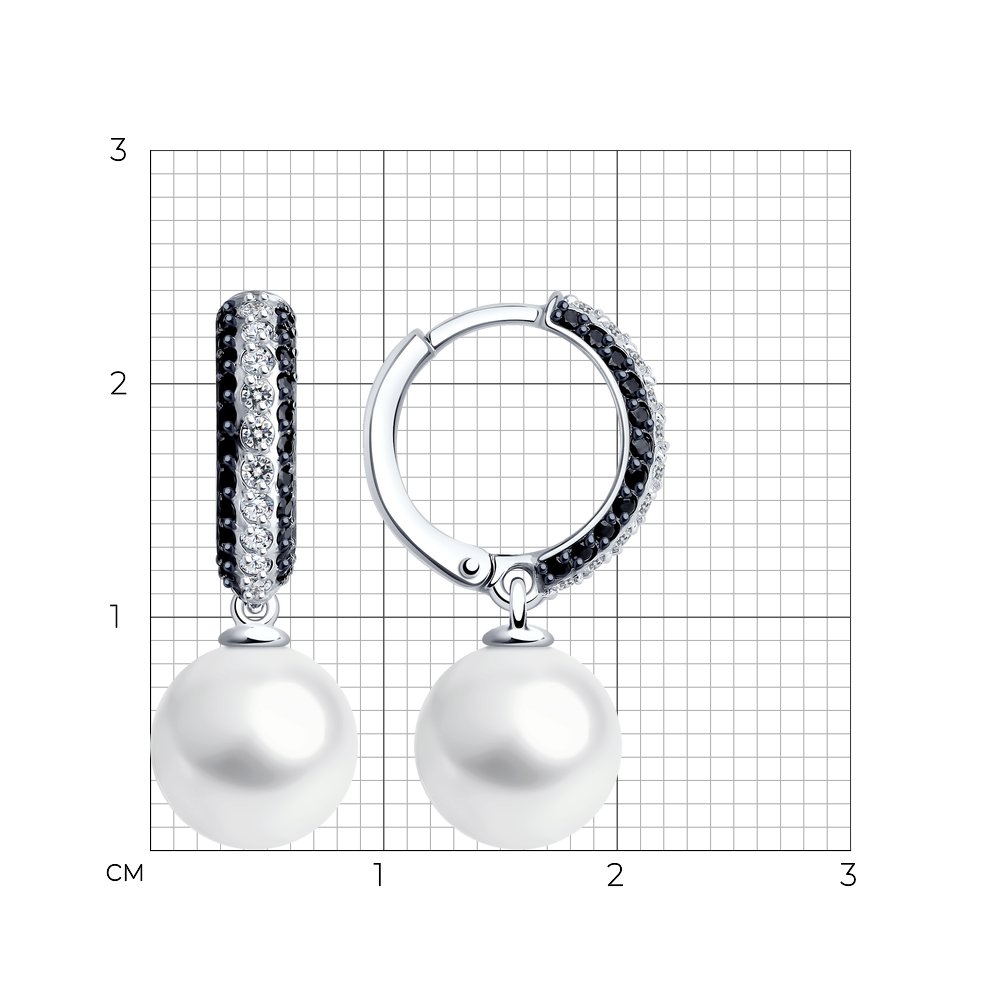 Элегантные серьги с подвесками из белого золота 585 пробы, с натуральным жемчугом и дорожками из прозрачных и черных фианитов, очень женственно и стильно смотрятся. Превосходные белоснежные жемчужины эффектно сочетаются с благородным блеском белого золота, оригинальный декор из контрастного сияния фианитов обращает на себя внимание. Приобретайте изысканное украшение в подарок, выгодно в магазинах Мир Золота.